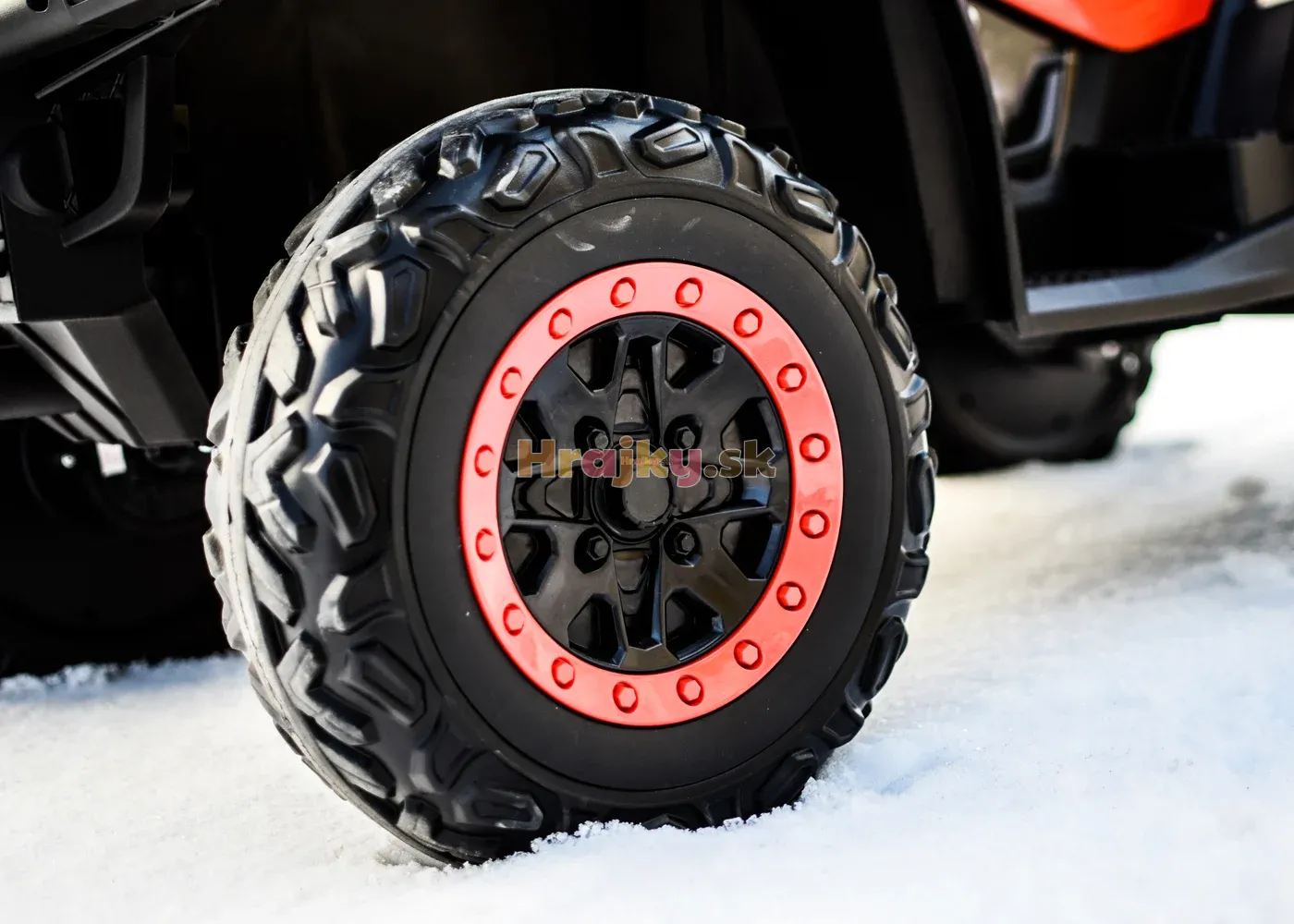 Výkonný pohon 4×4: Štyri motory po 80W a 24V/7Ah batéria poskytujú silný výkon a dlhú jazdu, čo robí z tejto detskej elektrickej buginy ideálne vozidlo pre všetky dobrodružstvá.
