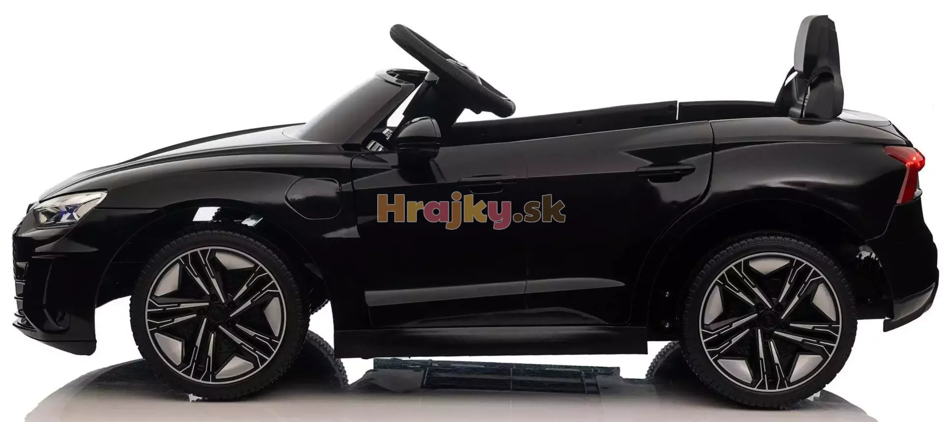 Toto čierne elektrické autíčko Audi má dva motory po 30W a 12V batériu. Disponuje prepínačom na zmenu smeru jazdy, štandardnými plastovými kolesami, LED svetlometmi, MP3 prehrávačom, USB portom, slotom na miniSD kartu a AUX portom. Volant je vybavený tlačidlom pre zvukové efekty a indikátorom napätia batérie. Autíčko má tri rýchlostné stupne, voliteľné pomocou diaľkového ovládania, a funkciu pomalého štartu a zastavenia pre bezpečnosť dieťaťa. Vhodné pre deti od 2 do 5 rokov.